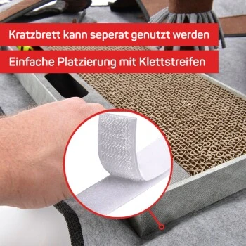 Lassen Sie Ihren vierbeinigen Liebling sich seine Leckereien verdienen. Verschiedenste Verstecke laden zum Suchen und Herumtollen ein. In jedem Tunnel, Turm oder Versteck sind Löcher eingelassen, sodass Ihre Katze mit der Pfote hindurch kommt und die integrierten Spielbüschel inkl. Glöckchen einfangen kann. Erleben Sie gemeinsame Stunden voller Spielspaß beim Kratzen, Suchen und Spielen. Fordern Sie Ihre Katze! Beschäftigung pur, durch aktives Spielen und Instinktförderung. Interaktives Spielen hat noch nie so viel Spaß gemacht! Und sollte mal nicht genügend Platz für den gesamten Spielteppich vorhanden sein, lässt sich das Kratzbrett inkl. Spielschiene vom Teppich lösen und einzeln verwenden. Als „kleiner Bruder“ des Activity Teppichs ist dieser Teppich auf Grund seiner Form hervorragend für die Verwendung in einer Zimmerecke geeignet!