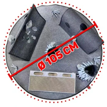 Damit der Teppich sicher an seinem Platz bleibt, ist er auf der Unterseite mit Anti-Rutsch Noppen versehen. Zusätzlich ist er mit Knisterfolie ausgestattet, um den Spieltrieb Deiner Katze weiter zu fördern. Der Teppich ist aus robusten Filz-Material gefertigt und somit langlebig und pflegeleicht.
