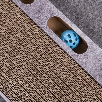 In jedem Tunnel, Turm oder Versteck des Teppichs sind Löcher, sodass Deine Katze mit der Pfote hindurchkommen und die integrierten Spielbüschel inklusive Glöckchen einfangen kann. Außerdem verfügt der Spielteppich COSMO über eine praktische Kratzfläche, auf der Deine Katze ihre Krallen wetzen und pflegen kann. Die Kratzpappe besitzt eine Spielschiene mit einem Ball inklusive Glöckchen, der zum Spielen animiert. Die Spielschiene wird mit durch ein eingenähtes Klettband am Teppich angebracht und kann bei Bedarf auch einzeln verwendet werden. Falls die Kratzpappe einmal ausgetauscht werden muss, bietet CanadianCat auch das passende Ersatzteil.