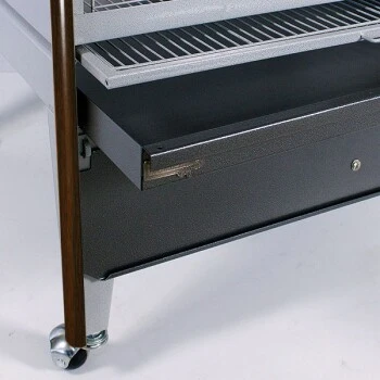 Montana Cages – Dieser superschöne Käfig bietet Ihrem Liebling ein perfektes Eigenheim! Wie von Montana cages gewohnt bietet es besonders viel Platz zum Klettern und Toben. Die Optik besticht durch eine besondere Kombination aus den beliebten Pulverbeschichtungsfarben Antik und Platinum sowie Eckprofile in Holzoptik. Durch eine größere und zwei kleine Türen hat man für die Fütterung und Reinigung einen guten Zugang zum Innenraum. Im unteren Bereich findet sich das Kotgitter und die Streuschublad