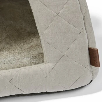Praktisch ist das herausnehmbare Wendekissen. Durch die verschiedenen Stoffe des Liegekissens kannst du individuell entscheiden, welche Oberfläche dein Liebling und du bevorzugen – die Seite mit Steppung oder das kuschelweiche, hellgraue Langhaarplüsch.