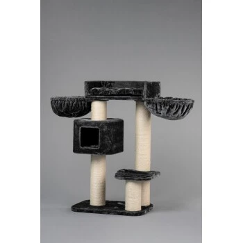 1 x Liegeplatz oben 60x43x15cm. Mehrere herausnehmbare Kissen. Spielhaus 40x40x30 mit grosser Öffnung von 20x20cm.