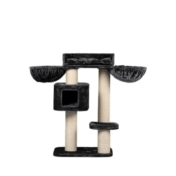 Starker Kratzbaum Devon Rex Creme mit sehr grossen Liegeplatz (60x43x15cm) mit herausnehmbaren Kissen hat sehr viel zum Spielen und zum Kratzen an der 15cmØ Dickenn Stämme.